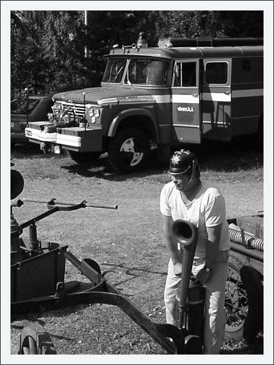 esittelee palokuntakalustoa. Kuva: Olavi Kanervisto |